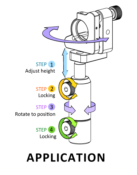 Ø20mm 旋轉支稈座/ L = 2“/適配PXD支稈和SB滑動基座/角度提示
